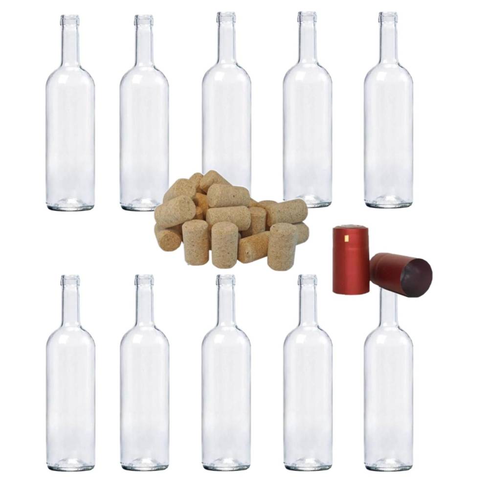 Sticla de vin 750 ml cu dop de pluta 10 bucati si capison rosu PVC