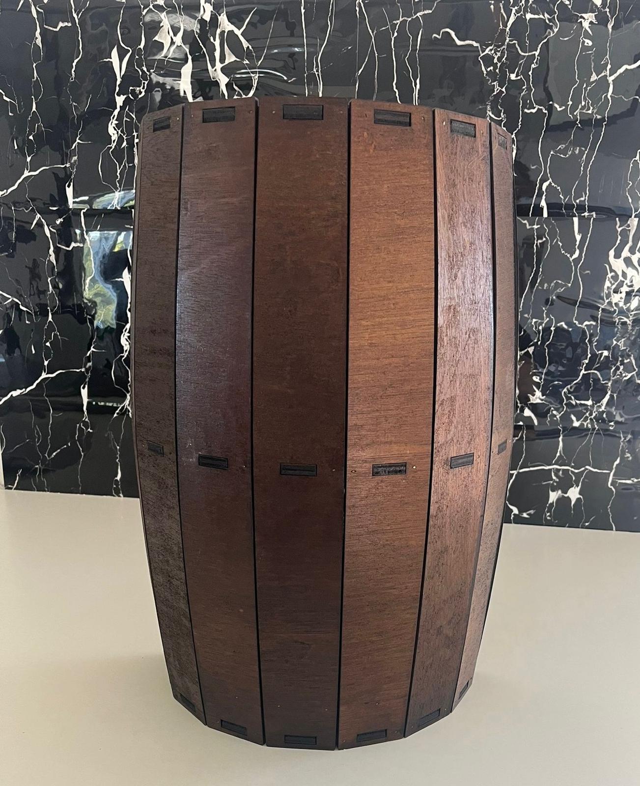 Suport 10 sticle de vin si 3 pahare, din lemn, forma de butoi- acest suport este un accesoriu decorativ deosebit, rustic si se poate expune atat in casa cat si in crame, hoteluri, restaurante cat si la prezentari si degustari de vinuri.