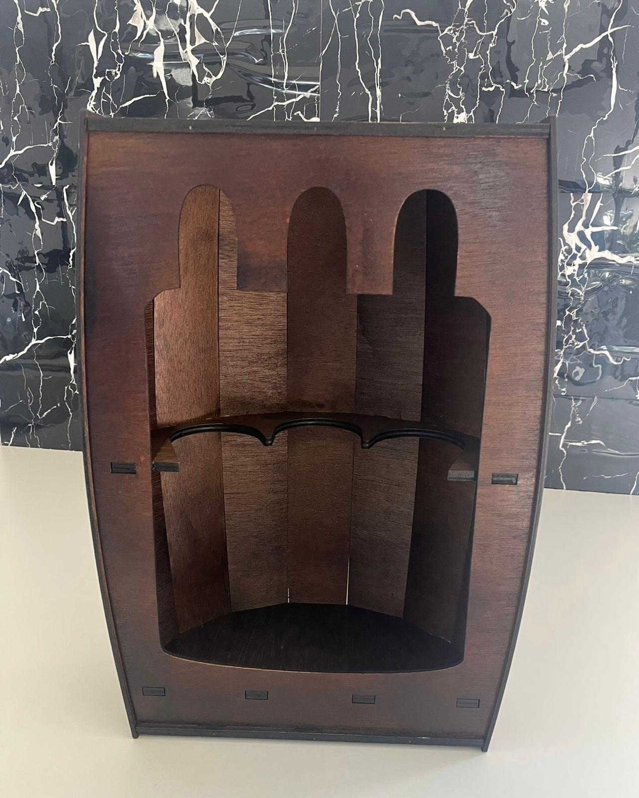 Suport 3 sticle de vin, din lemn, forma de butoi