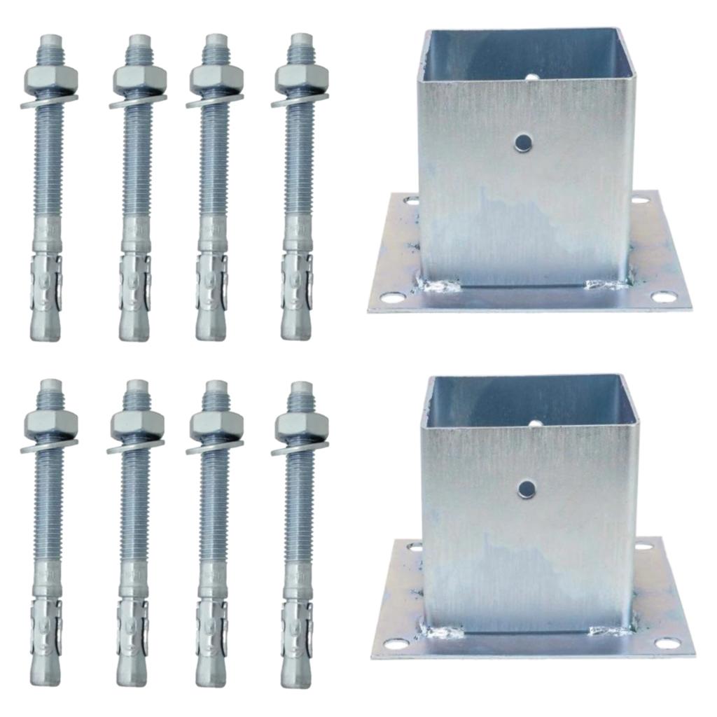 Suport fixare stalp 120x120mm, tip pahar x 2buc + Conexpand cu camasa tip M10x80mm (8buc)