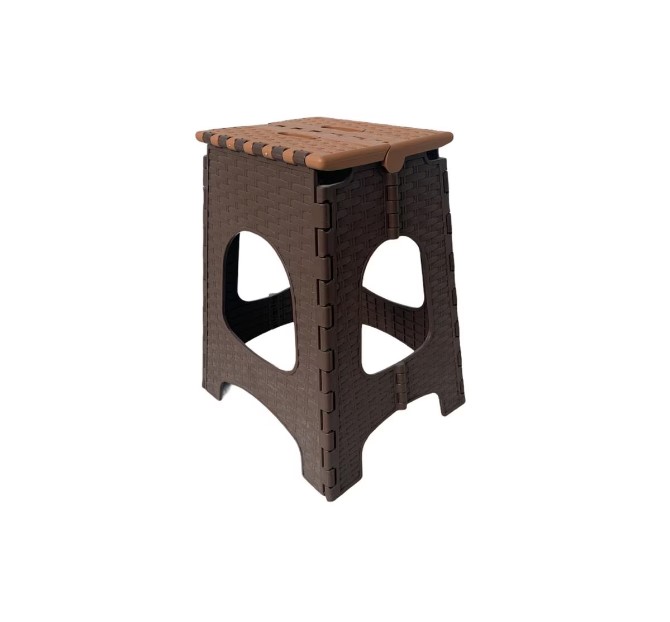 Taburet / Scaun pliabil mare maro-crem, tip Ratan - acest scaun este confectionat din plastic rezistent si se poate folosi atat in interior cat si la exterior, pe balcon, terasa sau in gradina atat de adulti cat si de copii.