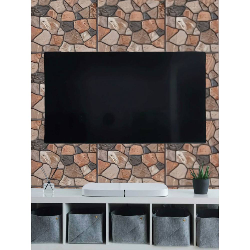 Tapet 3D autoadeziv, 30x30cm PVC, imitatie piatra, Caramiziu, 10buc/set