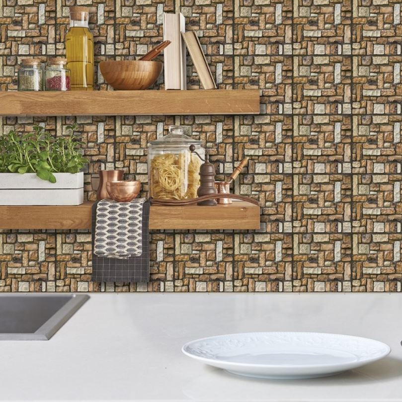 Tapet 3D autoadeziv, 30x30cm PVC, imitatie piatra, Maro 10buc/set