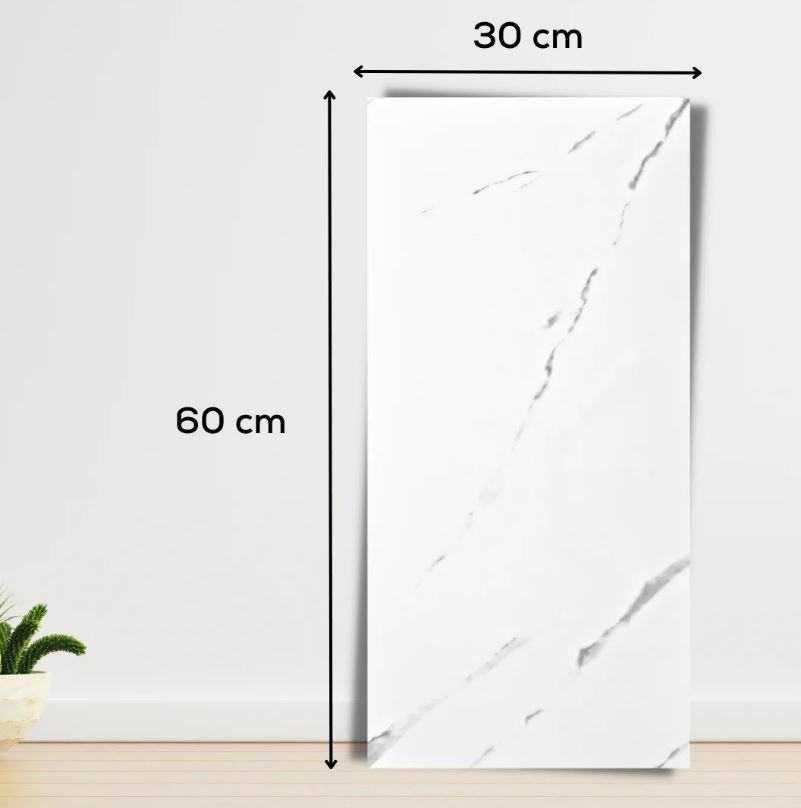 Tapet 3D autoadeziv, 60x30cm PVC, imitatie marmura, Alb, 10buc/set