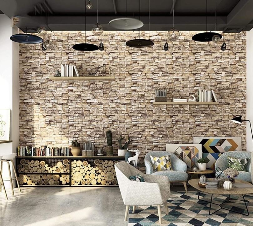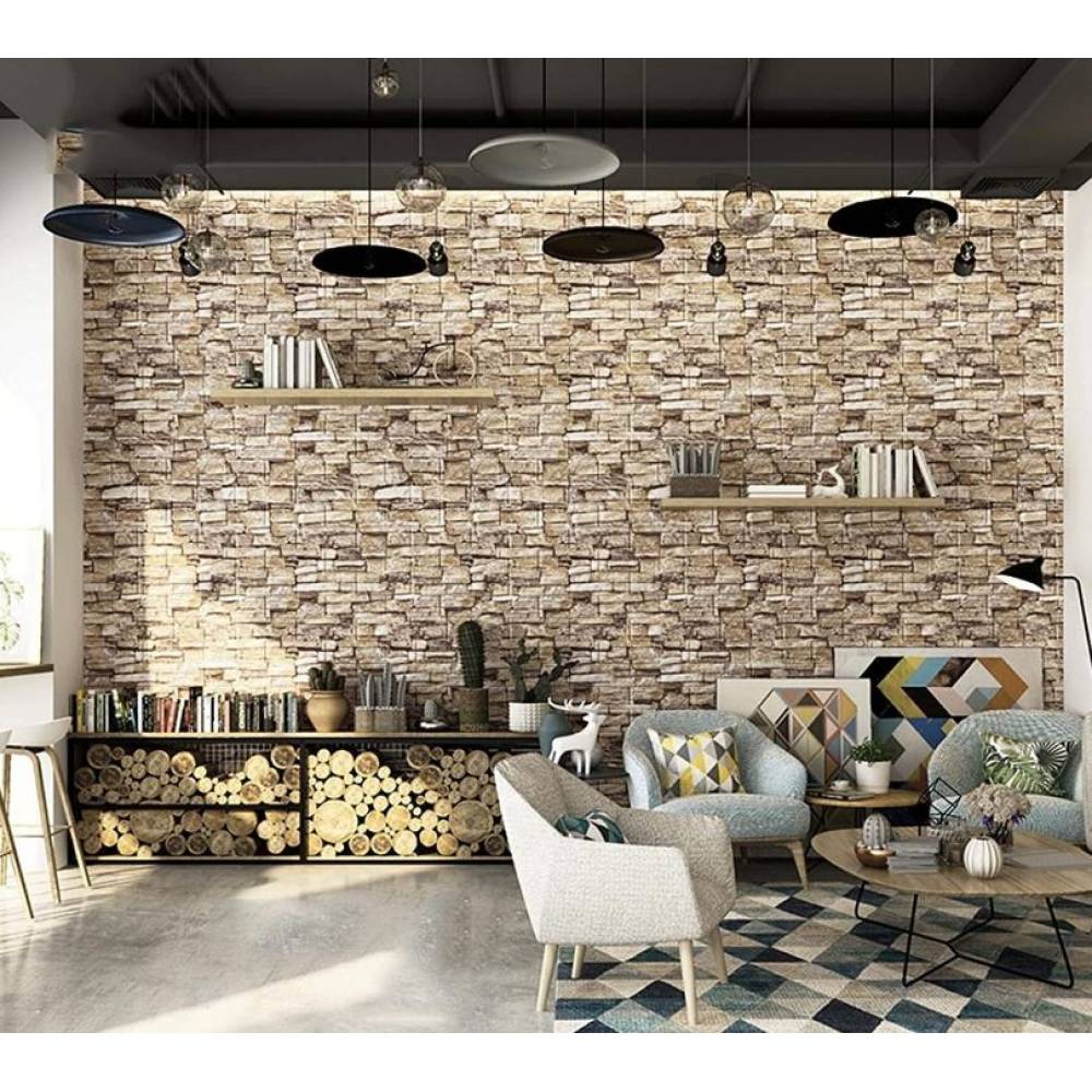 Tapet 3D autoadeziv, 70x77cm, imitatie caramida, Bej, 10buc/set