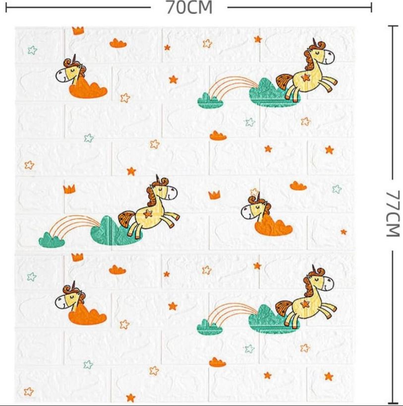 Tapet 3D autoadeziv, 70x77cm, Model Unicorni, Alb, 10buc/set
