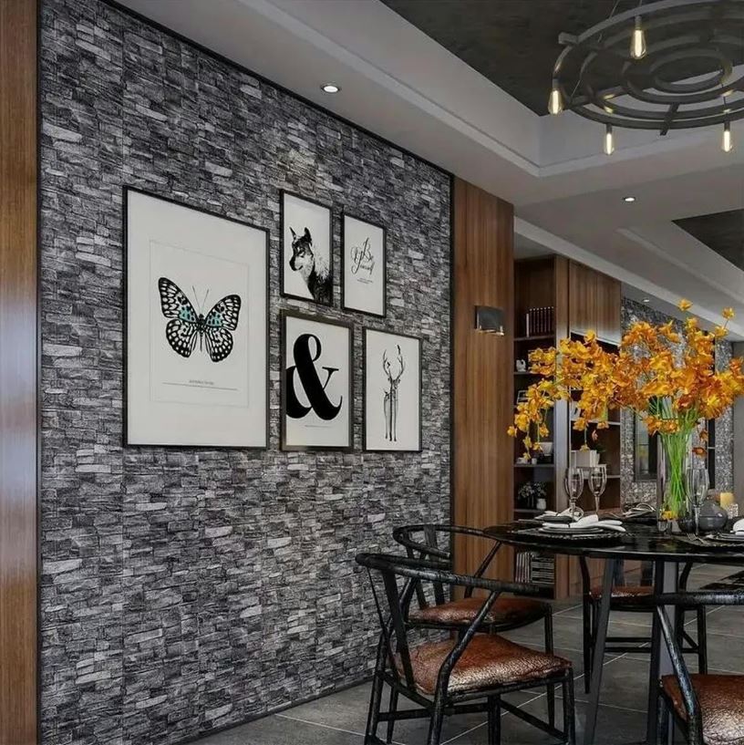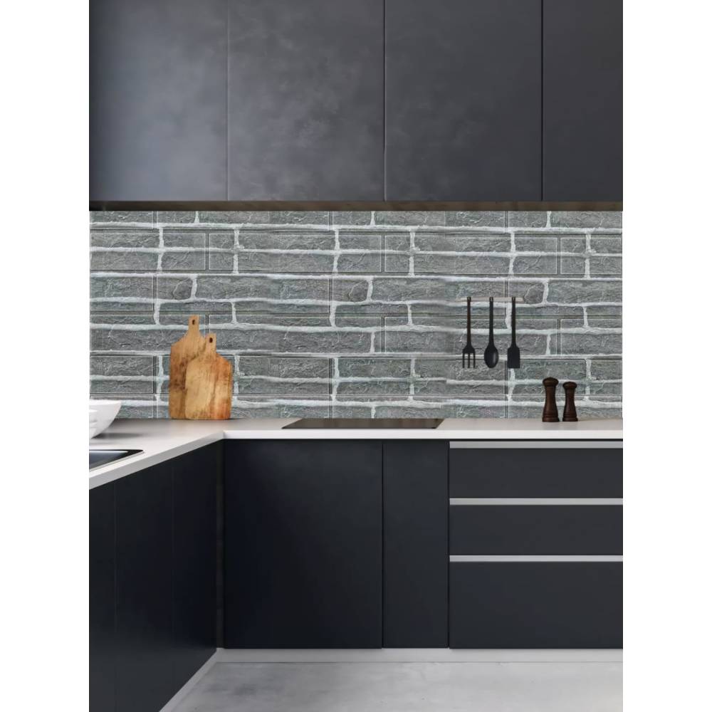 Tapet 3D autoadeziv, model caramida, gri, 35x38cm, 10buc/set