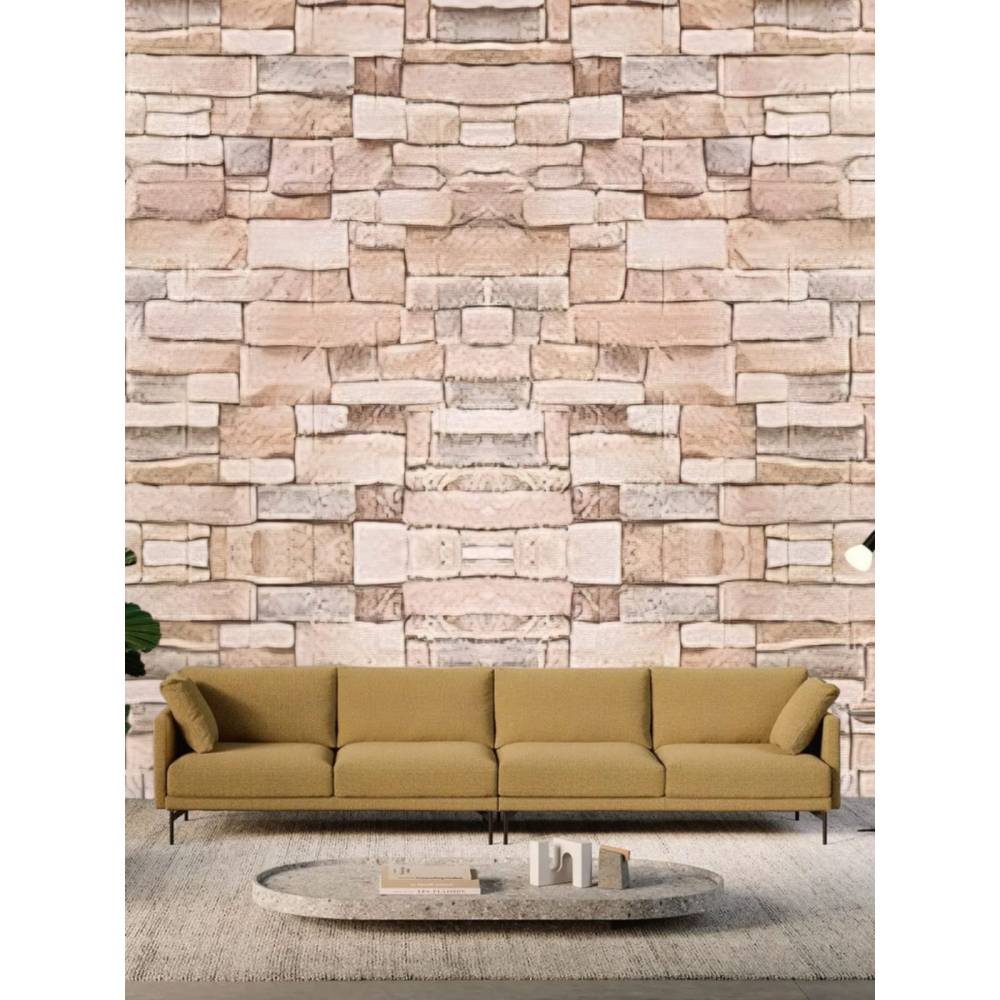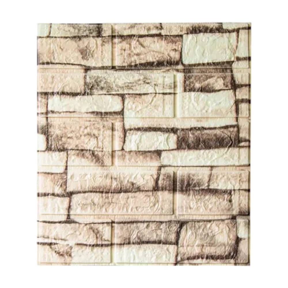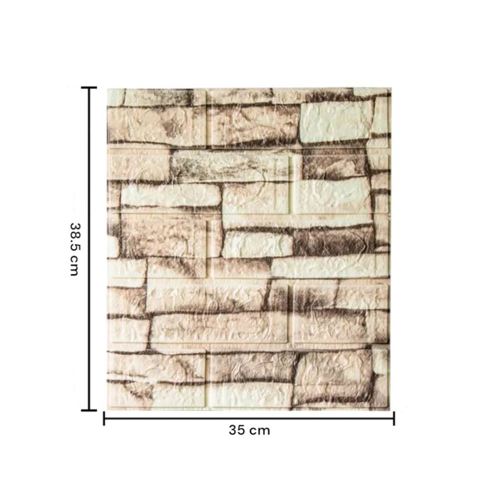 Tapet 3D autoadeziv, model caramida, piatra galbena, 35x38cm, 10buc/set - tapetul este element decorativ foarte practic si eficient destinat pentru decorarea peretilor interiori din dormitor, living, baie, bucatarie, hol sau pentru alte spatii precum birouri, saloane, etc.