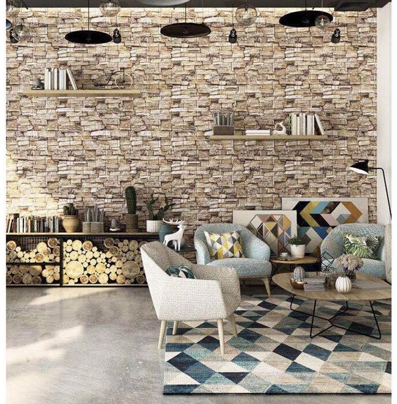 Tapet 3D autoadeziv, model caramida, piatra maro, 35x38cm, 10buc/set
