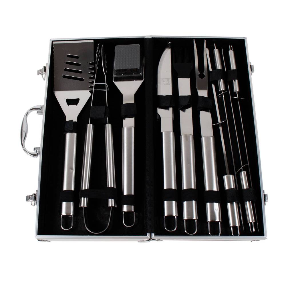 Ustensile gratar, set 10 piese cu diplomat de aluminiu
