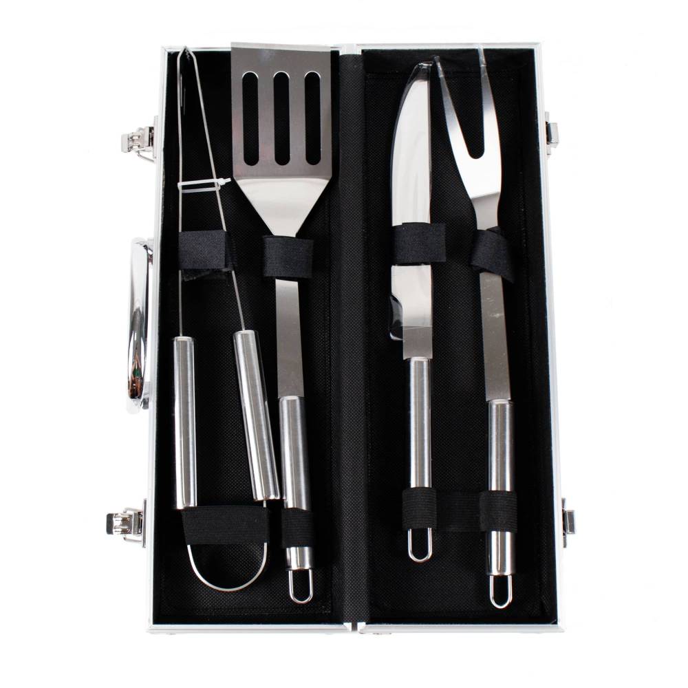 Ustensile gratar, set 4 piese cu diplomat de aluminiu