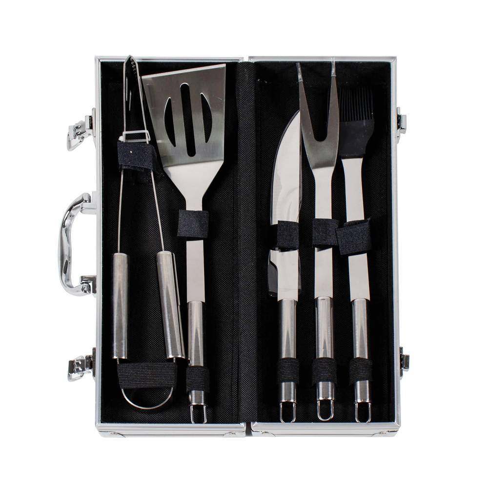 Ustensile gratar, set 5 piese cu diplomat de aluminiu